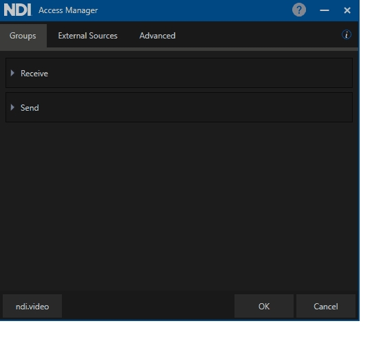 In the receiving PC or Mac, open NDI Access Manager and navigate to External Sources (NDI Access Manager is part of the freely available NDI Tools application)
