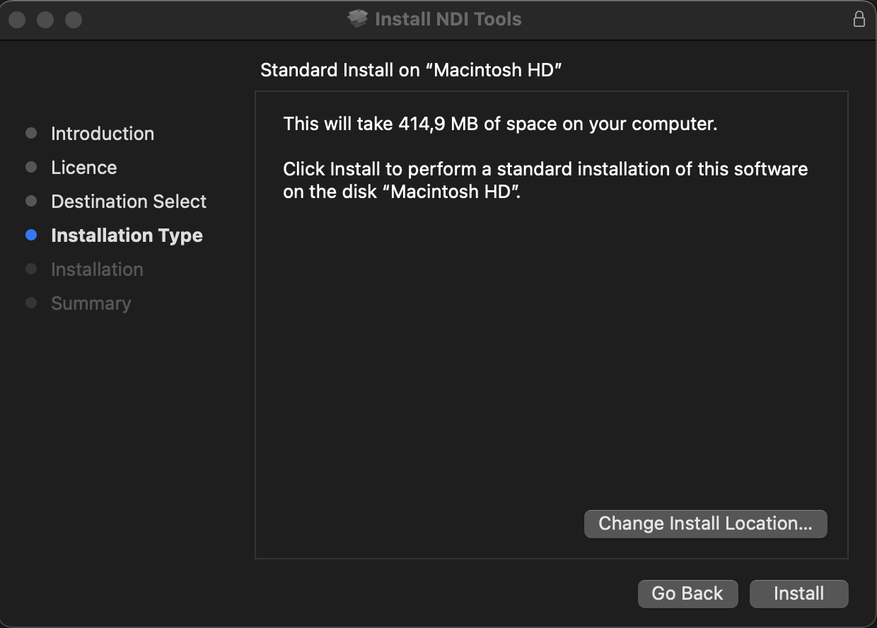 <figure><img src="https://content.gitbook.com/content/DO9LSaUxLOBIgPjyrjR1/blobs/XTaXfbbINA36joumJVoq/image.png" alt="" width="375"><figcaption><p>Screenshot of NDI Tools Installer (Mac version)</p></figcaption></figure>