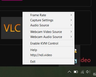 Right-click on the NDI Screen Capture icon to access different settings: